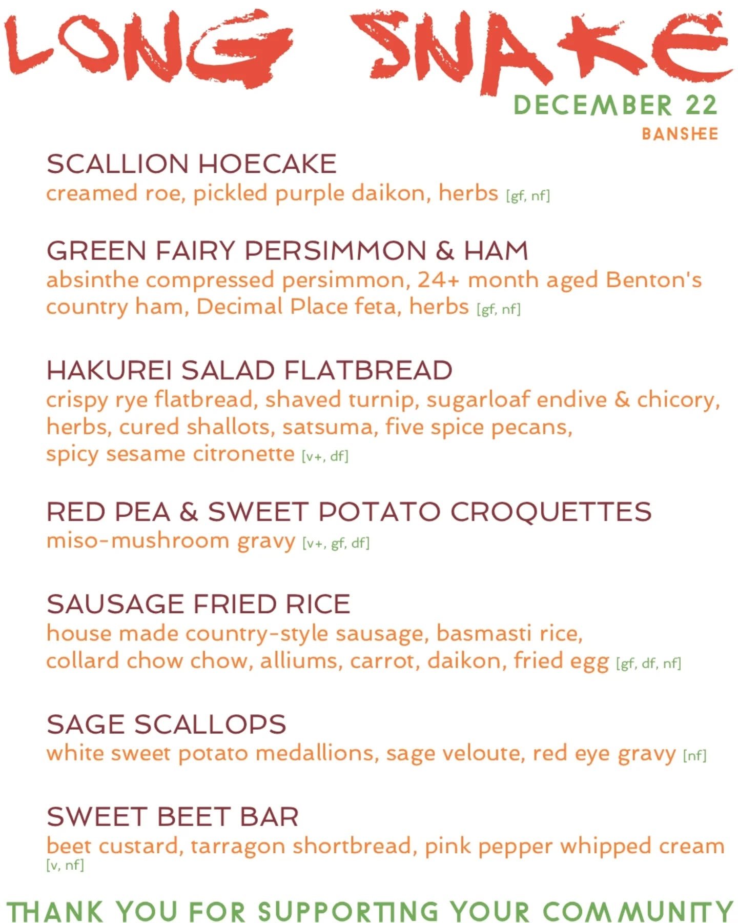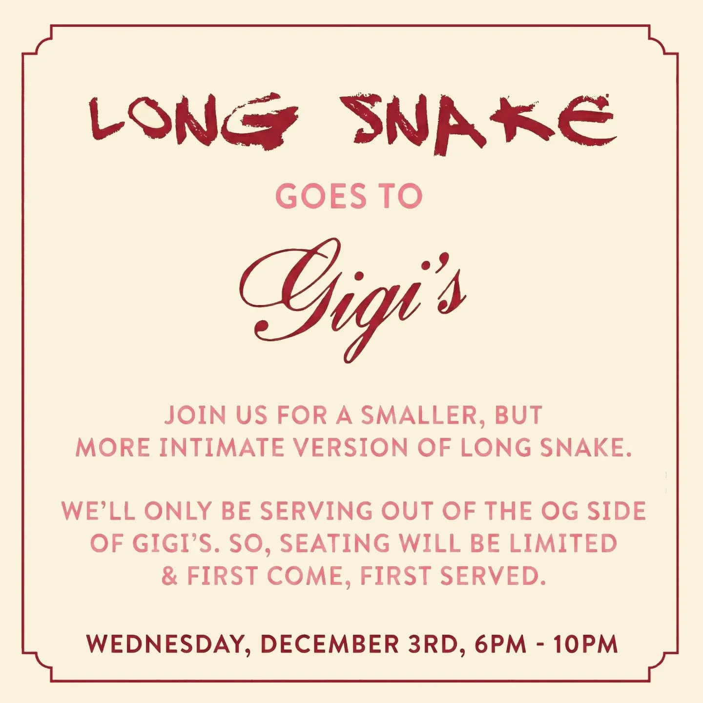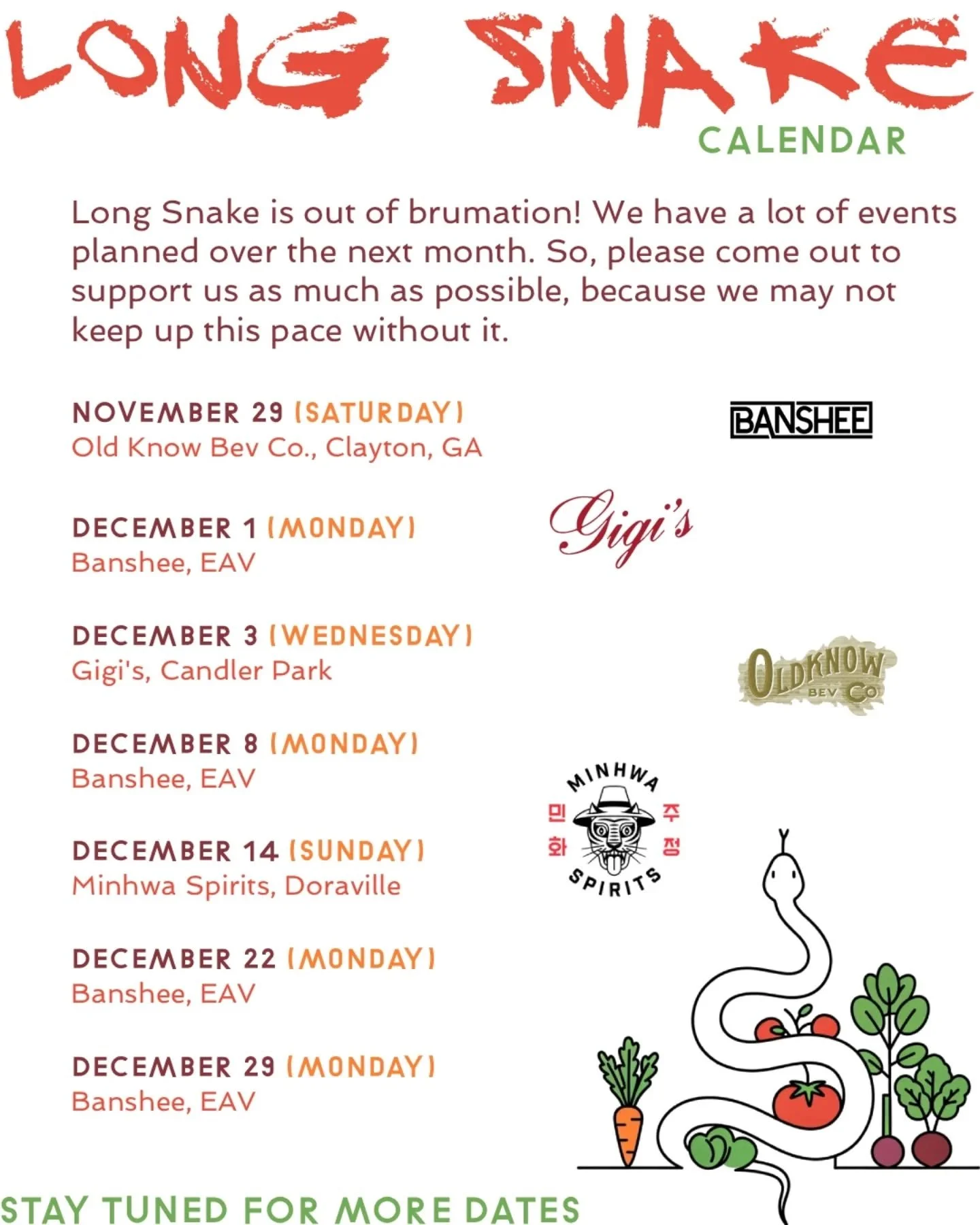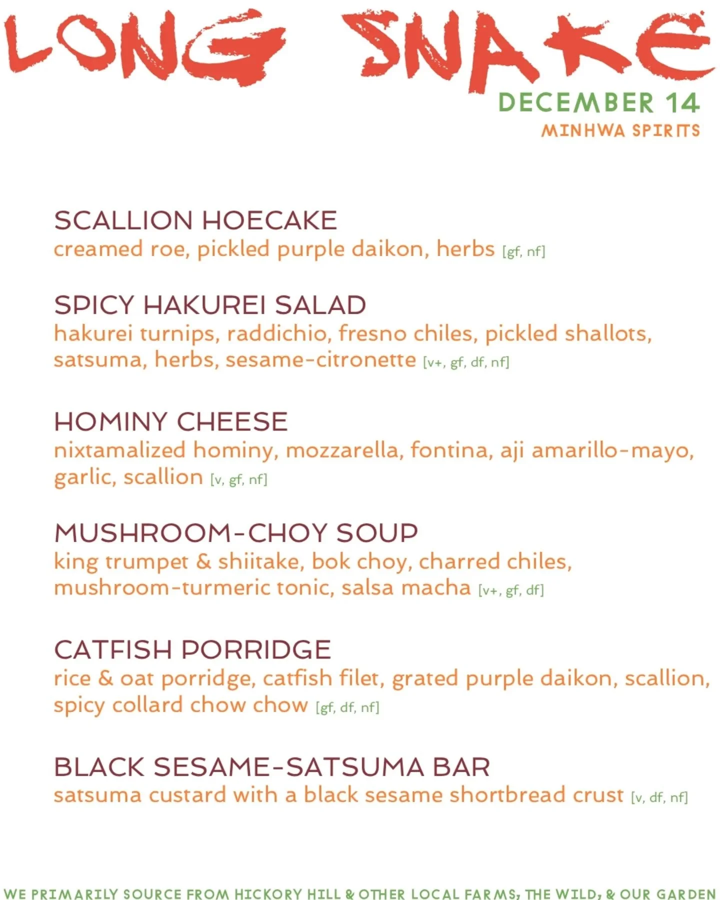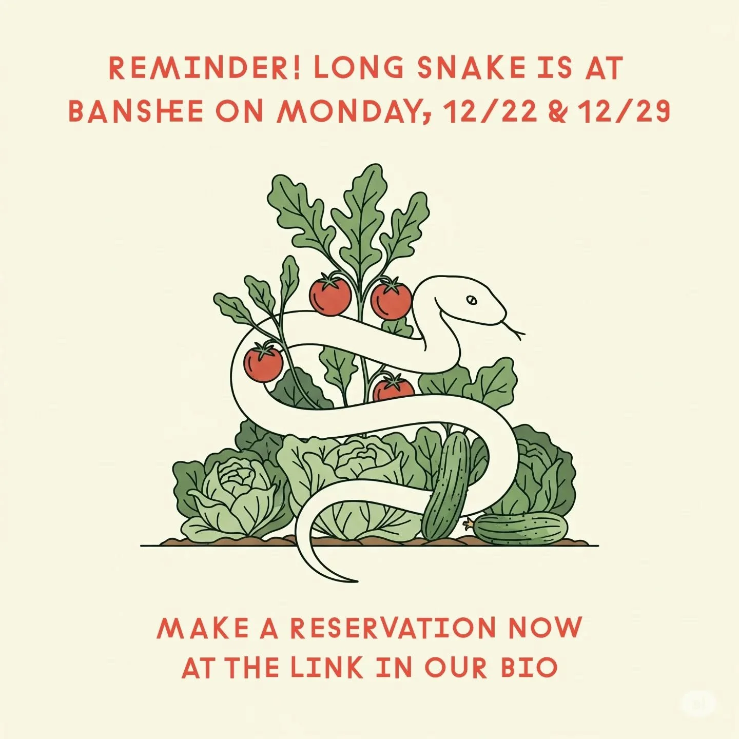 Please follow us @longsnakeatl on Instagram for MENUS, updates and UPCOMING events.